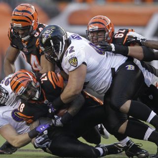 CINCINNATI, OHIO (01/ENE/2012).- Ray Rice realizó el domingo un par de carreras largas para touchdown, llevando a Baltimore a una victoria de 24-16 sobre los Bengalíes de Cincinnati y asegurando a los Cuerv os su tercer título consecutivo de la División Norte de la Conferencia Americana y el segundo lugar de la siembra en la postemporada.