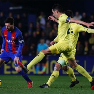 VILLARREAL, ESPAÑA (08/ENE/2017).- El argentino Leo Messi evitó la derrota del Barcelona ante el Villarreal (1-1) con un gol de falta directa en el minuto 90 en un partido de dominio barcelonista pero en el que no encontró soluciones para evitar un nuevo tropiezo que lo aleja del título.