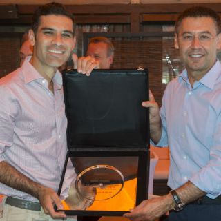 Márquez recibió de manos del presidente del catalán, Josep Maria Bartomeu, un reconocimiento por su trayectoria en el equipo español, donde militó por siete temporadas y ganó, entre otros títulos, dos Champions League y cuatro Ligas.