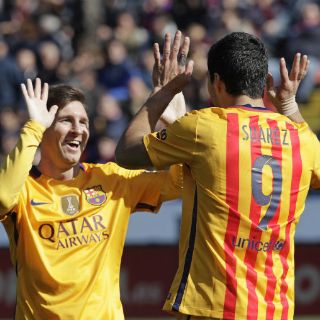 BARCELONA, ESPAÑA (07/FEB/2016).- Un gol en contra del defensor David Navarro y otro tanto del uruguayo Luis Suárez le valieron el domingo al