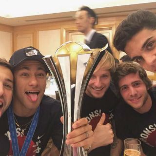 Mundial de clubes, ha aterrizado hace unos minutos en el aeropuerto de El Prat, procedente de Japón, con los jugadores enfundados en una camiseta conmemorativa y con el nuevo trofeo, el que hace cinco este exitoso 2015, en que además ha obtenido la Supercopa de Europa, la Copa, la Liga y Liga de Campeones.