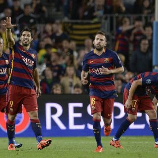 Barcelona.- Marc-André ter Stegen, Jeremie Mathieu, Gerard Piqué, Sergio Busquets, Dani Alves, Javier Mascherano, Iván Rakitic (Sergi Roberto, 71), Andrés Iniesta (Jordi Alba, 60), Sandro Ramírez (Munir El Haddadi, 63), Neymar y Luis Suárez. DT. Luis Enrique.