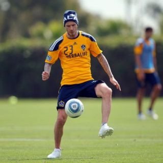David Beckham fue de nuevo el último en incorporarse a los entrenamientos del Galaxy de Los Ángeles, pero lo hizo el plena forma y feliz de tener a nuevos compañeros como el delantero colombiano Juan Pabló Ángel.