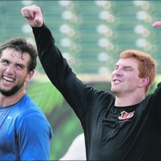 INDIANAPOLIS, ESTADOS UNIDOS (04/ENE/2015).- Andrew Luck y Andy Dalton cuentan con logros y huecos similares en sus currículos,.