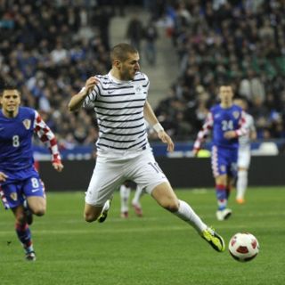 PARÍS, FRANCIA (29/MAR/2011).- El delantero internacional del Real Madrid, el francés Karim Benzema, tuvo que retirarse del partido amistoso que sostenía su selección con el combinado de Croacia debido a una lesión en el muslo izquierdo.