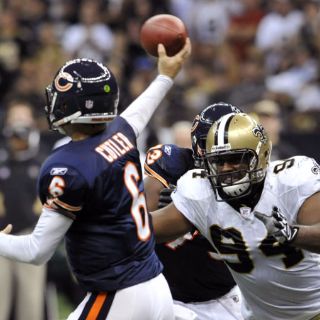 NUEVA ORLEANS, LOUISIANA (18/SEP/2011).- Drew Brees tiró tres de pases de touchdown, la defensa de Nueva Orleans no le dio respiro a Jay Cutler y los Santos vencieron el domingo 30-13 a los Osos de Chicago.