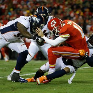 Alex Smith pasó para 153 yardas y dos touchdowns por los Jefes (7-5), el segundo de ellos a Jamaal Charles para colocar el marcador 26-16 a inicios del cuarto final. Pero el pase de Smith en el intento de conversión de dos puntos fue incompleto, y los Broncos agregaron otro gol de campo para poner el juego fuera de alcance.