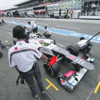 Sergio Pérez , en la primera práctica sobre la pista de Hockenheim, tuvo un registro de 1:17.413, mientras que en la segunda detuvo el reloj en 1:28.402.