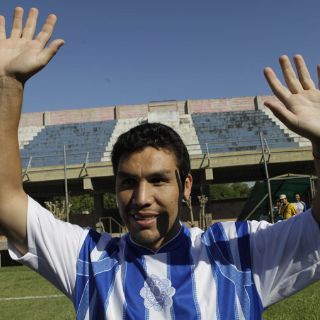 ASUNCIÓN, PARAGUAY (20/ENE/2012).- El delantero Salvador Cabañas expresó que está muy contento por su retorno al futbol durante su presentación como refuerzo del 12 de Octubre de Paraguay, dos años después del balazo que recibió en la cabeza en un bar de México.