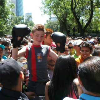 Cerca de cinco mil aficionados se han dado cita para ver de cerca a su ídolo, que desde el momento en que bajó de la camioneta arrancó los gritos de los aficionados capitalinos, que con tan sólo ver la figura del púgil jalisciense olvidaron la larga espera bajo el sol.