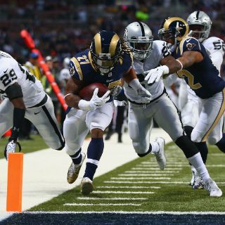 SAN LUIS, MISSOURI (30/NOV/2014).- Tre Mason realizó dos largos acarreos de anotación y Shaun Hill aportó tres touchdowns para que los