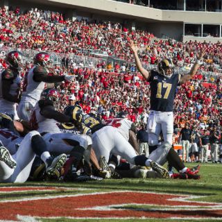 TAMPA, FLORIDA (25/SEP/2016).- Case Keenum conectó el pase que representó el primer touchdown de los Carneros desde que se mudaron de vuelta a Los Ángeles, y Todd Gurley logró dos anotaciones más por tierra, en la victoria del domingo, por 37-32, sobre los Bucaneros de Tampa Bay.