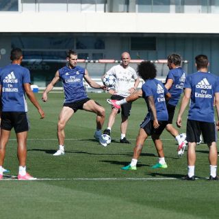 El resto de la plantilla, sin ausencias por lesiones, comenzó la sesión con unos rondos en los que se vio tocar balón por primera vez a Bale desde que se lesionó nuevamente el sóleo izquierdo, en el clásico del 23 de abril contra el Barcelona.