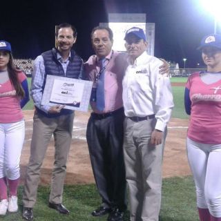 El acto protocolario se llevó a cabo al final del cuarto inning entre aplausos de la concurrencia.