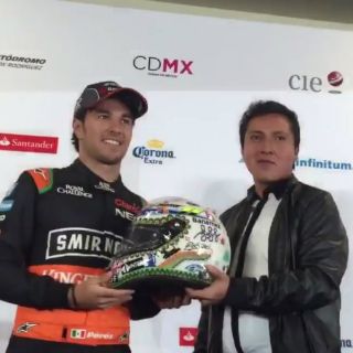 Sergio "Checo" Pérez recibió en días pasados el casco diseñado por el estudiante Juan Francisco Sánchez Zeferino especialmente para que el Gran Premio de México de la Fórmula 1 que se correrá este domingo en el Autódromo Hermanos Rodríguez de la Ciudad de México.