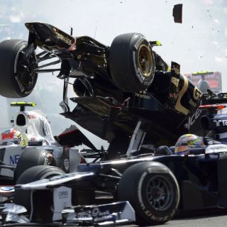 "Pastor Maldonado tuvo una salida en falso, para empezar. Y yo me metí en el interior de Fernando Alonso. Estaba entrando en la primera curva, frenando y, de repente, los coches salieron detrás de mí y hubo un problema tremendo", manifestó el piloto mexicano, nacido hace 22 años en Guadalajara.