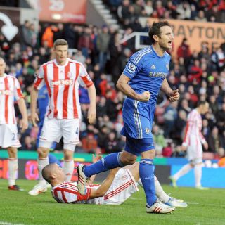 LONDRES, INGLATERRA (12/ENE/2013).- Lejos aún del puntero Manchester United, Chelsea ya se acercó al sublíder Manchester City gracias a la goleada 4-0 sobre Stoke City este sábado, en la fecha 22 de la Liga Premier de Inglaterra.