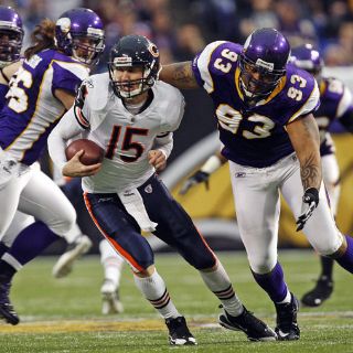 MINNEAPOLIS, MINNESOTA (01/ENE/2012).- Un regreso de intercepción de Charles Tillman en el segundo cuarto dio a Chicago la ventaja que sería definitiva, y los Osos cortaron el domingo su cadena de cinco derrotas consecutivas al vencer por 17-13 a los Vikingos de Minnesota a pesar de tres capturas y media de quarterback de Jared Allen.