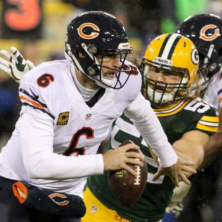GREEN BAY, ESTADOS UNIDOS (27/NOV/2015).- Jay Cutler lanzó para 200 yardas y un touchdown, antes de que los Bears de Chicago frenaran a los Packers de Green Bay en cuarta y gol con 22 segundos restantes en el partido, para imponerse el jueves por 17-13.
