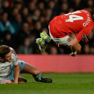 Javier Hernández se quedó unos instantes tirado sobre el césped luego que su tobillo derecho recibió un fuerte golpe; la tarjeta amarilla para el defensor "hammer" se quedó corta, y aunque parecía salir de cambio, el mexicano se recuperó para concluir el cotejo.