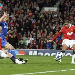 MANCHESTER, INGLATERRA (13/ABR/2011).- El Manchester United aseguró su presencia en semifinales gracias a un gol del mexicano Javier Hernández y otro del coreano Park Ji-Sung, los dos tras sendos pases de la gran figura del partido, el veterano Ryan Giggs, para eliminar al Chelsea de Londres por marcador global de 3-1.