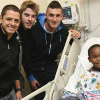 El atacante mexicano platicó y repartió regalos con niños enfermos de un hospital de la localidad de Manchester