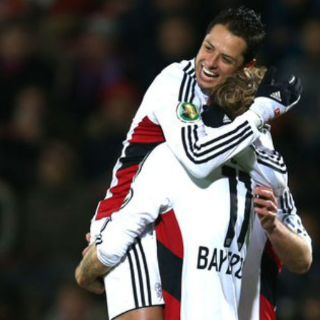 GUADALAJARA, JALISCO (15/DIC/2015).- De nuevo, el delantero tapatío Javier 'Chicharito' Hernández inició el camino de la victoria para su equipo, el Bayer Leverkusen, al anotar el primer gol de las Aspirinas en el 3-1 sobre Underhaching en la Copa Alemana.