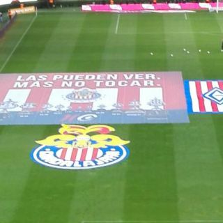 GUADALAJARA, JALISCO (20/AGO/2016).- El estadio Chivas estaba prácticamente vacío, pero la directiva del Guadalajara no perdió la oportunidad de presumir sus 11 campeonatos. Una enorme manta sobre la cancha tenía la leyenda: "Las puedes ver, más no tocar", además uno de los escudos más añejos del Club Guadalajara, así como otro de la década de los 60 aparecieron en el terreno de juego. Antes de que los jugadores saltaran a calentar, personal del inmueble pasó a retirarlas.