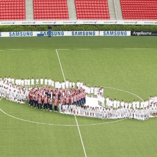 La foto es un mensaje de paz, con la intención de que la violencia en nuestro país disminuya, Chivas ya había hecho algo similar, pero no dentro del nuevo inmueble y sobre el césped artificial, donde los rojiblanco enfrentarán al Morelia el próximo sábado, en cotejo correspondiente a la fecha cinco.