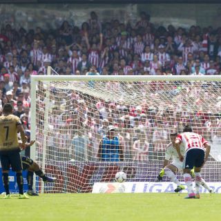 Guadalajara se mantuvo como el mandón en el juego, con mayor posesión de pelota, rápido traslado y sin que la ofensiva de la UNAM, una de las más poderosas del torneo, tuviera ocasiones de peligro.