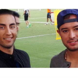 GUADALAJARA, JALISCO (14/NOV/2016).- Mientras el entrenamiento de Chivas se desarrollaba, dos jugadores de los Charros de Jalisco, Amadeo Zazueta y Edson García, tomaban lugar en una de las carpas que hay en Verde Valle.