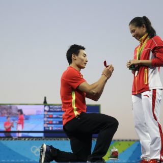 La china He Zi recibe la petición tras ganar la medalla de plata en clavados