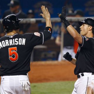 MIAMI, FLORIDA (25/MAY/2012).- El guardabosques Chris Coghlan recuperó el poder de su bate y pegó de cuatro esquinas para coronar racimo de cinco carreras y darle a los Marlins de Miami un triunfo por 7-6 contra los Gigantes de San Francisco.