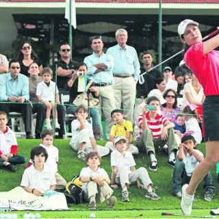 Lorena Ochoa se dio el tiempo para compartir con los niños de la escuela de golf del Guadalajara Country Club, en una clínica en la que mostró y habló de las técnicas básicas para golpear a la pelota con las distintos maderas.