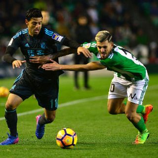 SEVILLA, ESPAÑA (03/MAR/2017).- La Real Sociedad, equipo donde juega el mexicano Carlos Vela, se llevó los tres puntos del Villamarín (2-3) y se situó provisionalmente en puestos de Champions League ante un Betis que es incapaz de enlazar esta temporada dos victorias consecutivas para separarse definitivamente de la zona baja de la tabla.
