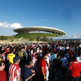 En la explanada del estadio la historia no fue diferente para cada uno de los aficionados. También se retardó la entrada. Se instalaron tres filtros de revisión con arcos de detección de metales. El paso de personas era una a una, pues los elementos de la Fuerza Única instalados en estos puntos también hacía una revisión exhaustiva de cada uno de los aficionados. En estos puntos las filas llegaron a ser tan extensas que rodeaban una cuarta parte del estadio, sobre todo, en los puntos de acceso norte y sur.