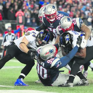 Los Patriots se pusieron arriba 16-0 en la primera mitad antes de que los Ravens cerraran el segundo cuarto con un gol de campo de Justin Tucker, a quien previamente le habían bloqueado un intento, poniendo fin a su racha perfecta de 28 goles de campo conectados de manera consecutiva.
