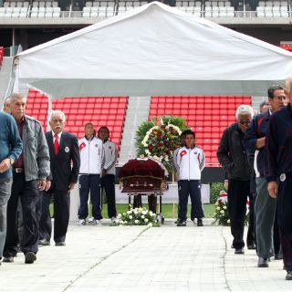 GUADALAJARA, JALISCO (31/DIC/2012).- Con una gran guardia, conformada por familiares y amigos de Chava Reyes, así como jugadores, cuerpo técnico, directivos y profesores de fuerzas básicas, concluyeron las guardias y con ello el homenaje de cuerpo presente para el máximo goleador de Chivas, Chava Reyes.
