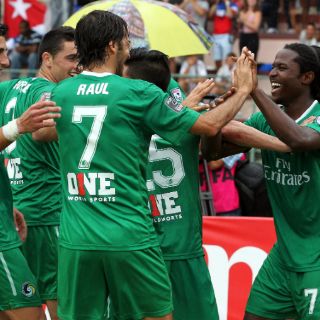 Al final del encuentro, los jugadores del Cosmos saludaron al público que los aplaudió y vitoreó, en particular al reconocido Raúl, quien fue capitán de la selección española y del Real Madrid por años.