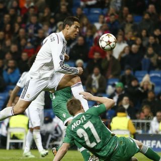 Cristiano Ronaldo logró de penalti el primer tanto del conjunto madridista y el quinto del curso continental, con lo que iguala con su compañero Karim Benzema y un nutrido grupo que está a cuatro del brasileño Luiz Adriano (Shakhtar Donetsk) y a dos de Messi.