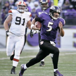 BALTIMORE, ESTADOS UNIDOS (24/DIC/2011).- Joe Flacco lanzó el sábado dos pases de touchdown y los Cuervos de Baltimore vencieron 20-14 a los Cafés de Cleveland para quedar a un paso de ganar la División Norte de la Conferencia Americana.