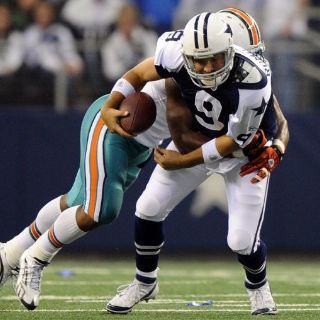 ARLINGTON, ESTADOS UNIDOS (24/NOV/2011).- Tony Romo lanzó dos pases de anotación a Laurent Robinson, y Dan Bailey convirtió un gol de campo de 28 yardas cuando el tiempo se agotaba, para dar el jueves a los Vaqueros de Dallas una victoria por 20-19 sobre los Delfines de Miami.