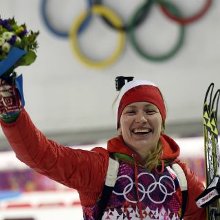 SOCHI, RUSIA (17/FEB/2014).- La atleta bielorrusa Darya Domracheva ganó su tercera medalla de oro en los Juegos Olímpicos de
