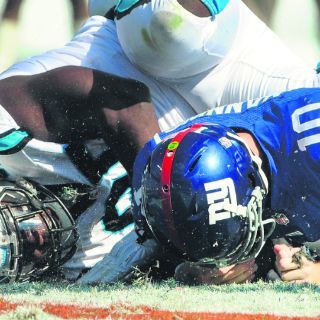 La ofensiva logró sólo 150 yardas y la línea defensiva toleró siete capturas al mariscal Eli Manning. En la segunda mitad, la defensiva pareció rendirse, mientras que las Panteras acumulaban yardas y puntos.