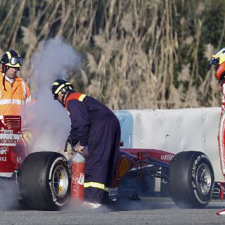 El español maneja apenas en su segunda vuelta en el F138 cuando empiez a salir humo del motor