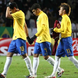 Brasil: Julio César; Alves, Lucio, Thiago Silva, André Santos; Lucas Leiva, Ramires, Ganso; Robinho, Pato y Neymar.