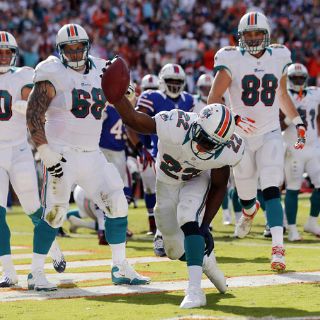 MIAMI, FLORIDA (23/DIC/2012).- Reggie Bush atrapó dos pases de touchdown y anotó otro en acarreo, para ayudar el domingo a los Dolphins de Miami a vencer 24-10 a los Bills de Buffalo. Pero los Delfiness (7-8) quedaron fuera de la contienda por los playoffs cuando Cinncinati venció a Pittsburgh 13-10.