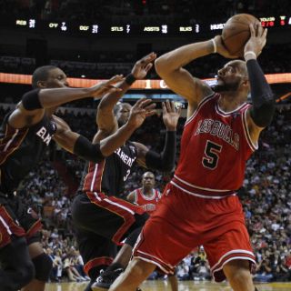 MIAMI, FLORIDA (07/MAR/2011).- El base Derrick Rose encestó 27 puntos y el alero sudanés Luol Deng coronó una racha de 18 tantos, con dos tiros libres, que pusieron a los Toros de Chicago en control de las acciones para derrotar 86-87 al Calor de Miami, que perdió por cuarta ocasión consecutiva.