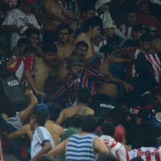 Tras las bengalas que comenzaron a encenderse en el área de la barra de Chivas, los policías tenían la orden de retirarles dichos objetos a los asistentes para evitar que se lesionaran. No tenían la orden de desalojar a las personas.