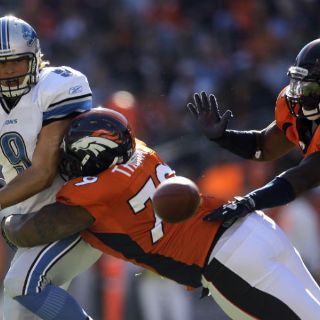 DENVER, COLORADO (30/OCT/2011).- Los Leones de Detroit capturaron el domingo siete veces al quarterback Tim Tebow y convirtieron en touchdown dos balones sueltos para romper una cadena de dos derrotas en el triunfo de 45-10 sobre los Broncos de Denver.